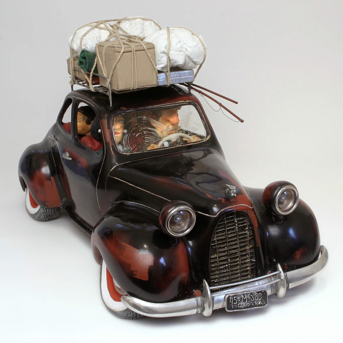 Jedes Guillermo Forchino Produkt ist in einem einzigartigem Forchino Zeitungspapier verpackt und mit einem Spezialetikett versehen. Auf dem Etikett und dem Aufkleber auf dem Boden jeder Verpackung ist wiederum die einmalige Nummerierung für jedes seiner Werke vermerkt. In jeder Verpackung befindet sich eine Broschüre mit der Autobiografie des Künstlers, sowie ausgewählten Abbildungen der Gesamtkollektion. Auch liegt ein nummeriertes Zertifikat der Verpackung bei, um die Echtheit des Forchinos Produktes zu beweisen. DIE GESCHICHTE: Es war das erste mal, dass Papa genug Geld sparen konnte um mit der ganzen Familie in Urlaub zu fahren. Wir hatten nur einen Koffer aus Aluminium - Sehr Schön - auch wenn er zu klein für alles war. Wir haben dann eben noch zwei große Kisten gepackt und sie auf das Dach des Autos gestellt. Mutter, hatte auf Ihrer Seite, hatte zwei Bettdecken gerollt und nutzte alte Betttücher für den Rest der Kleider. Es gab aber was, was wir um nichts in der Welt vergessen durften: Die Angelrute! Und so waren wir für unseren Grossen Urlaub in Coronda bereit. Die Stadt wo Tante Celia wohnte war nur 100km entfernt aber für uns war es eine riesige Expedition. |