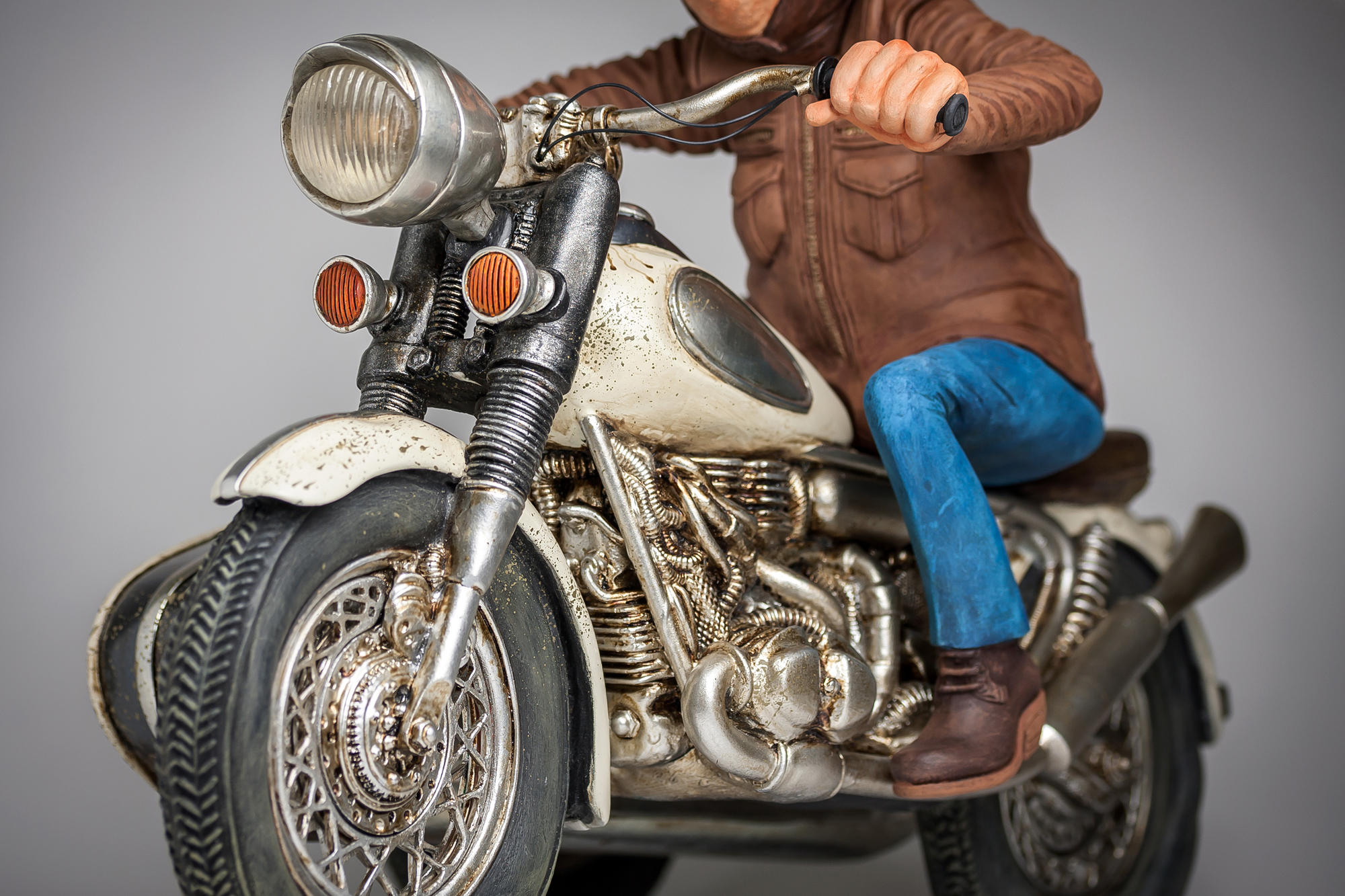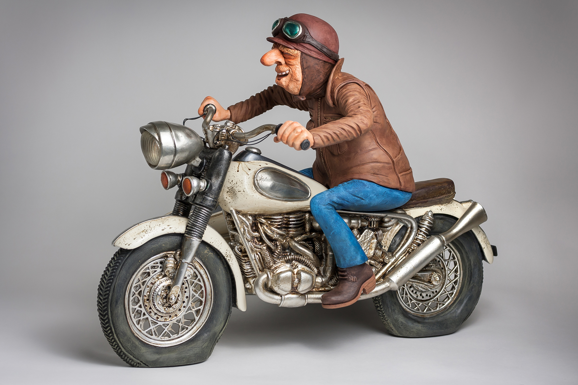 Guillermo Forchino der KünstlerIm Jahr 1980 hat der Künstler Guillermo Forchino angefangen, mit verschiedenen Materialien an der Facultad de Bellas Artes Rosario, Argentinien zu experimentieren, um die richtige Gestalt für seine dreidimensionale Kunst zu finden. Seine Studien gingen an der Uni von der Sorbonne weiter. Guillermo Forchino lernte, wie man mit Materialien wie Wachs, Resin, Leim, und traditionellen Verbindungen arbeitet. Mit der Erfahrung in den an der Sorbonne gelernten Methoden ist Guillermo Forchino nach Rosario zurückgekehrt, wo er anfing, gegenständliche Skulpturen herzustellen. Dabei benutzte Guillermo Forchino zart gefärbtes Papiermache für die sichtbaren Teile. Später hat Forchino angefangen, Resine für seine witzigen Skulpturen zu benutzen.