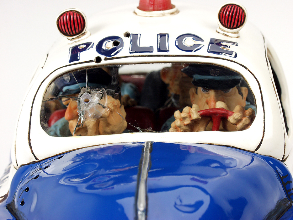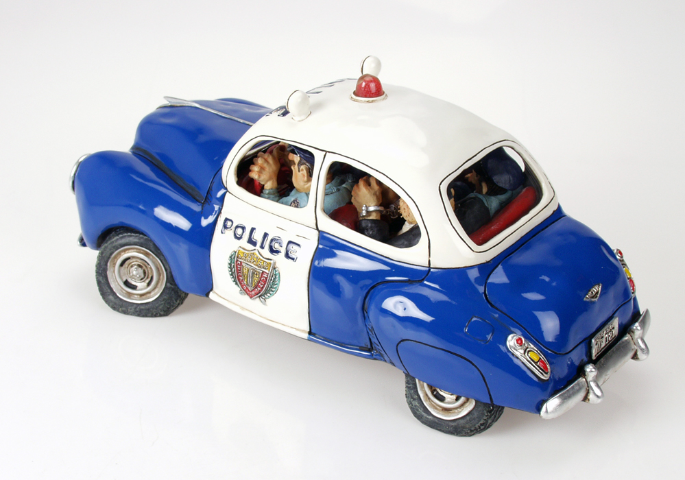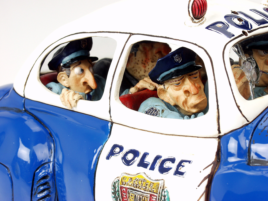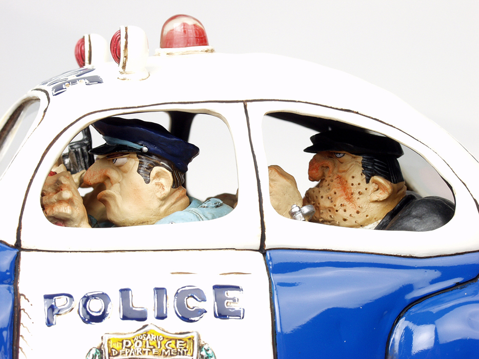 Die Comic-Kunst von Guillermo Forchino findet jetzt einen größeren Liebhaber und Sammlerkreis. Seine Vorliebe für spitzen Humor und sehr detailgetreue Übertreibung verwirklicht er in jedem seiner Werke, auch die Charakterstärken und Schwächen seiner Mitmenschen werden wirkungsvoll in Szene gesetzt. DIE GESCHICHTE: Nachdem er die Ausbildung an der Polizeiakademie glanzvoll abgeschlossen hatte, wurde der junge Polizist Richard Thompson der städtischen Schutztruppe zugeteilt. Und noch am gleichen Tag wurde die Bank der Stadt von drei schwer bewaffneten Räubern überfallen. Die Polizei nahm sofort einen der Banditen fest. Nachdem ihm seine Rechte vorgelesen worden waren, setzte man ihn auf den Rücksitz des Polizeiwagens und fesselte ihn mit Handschellen an Officer Thompson, der den Auftrag hatte, jede plötzliche Bewegung des Verdächtigen unverzüglich schwer zu ahnden. Und sofort machten die Kollegen kehrt und nahmen die Verfolgung der anderen Bandenmitglieder auf. |