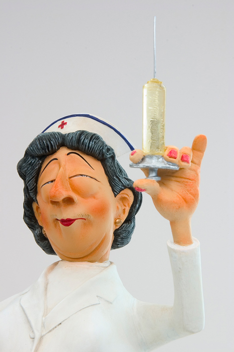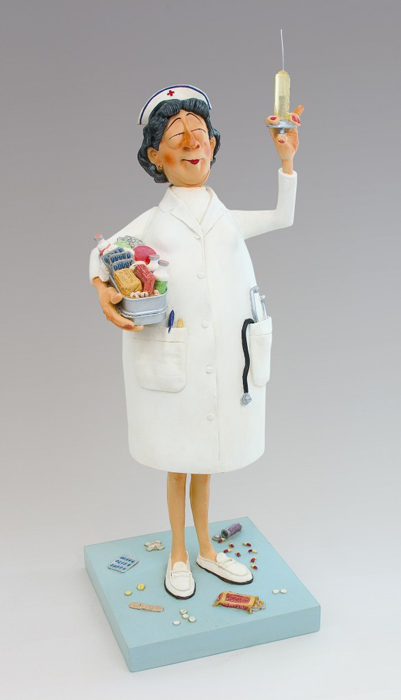 In jeder Forchino Verpackung befindet sich eine Broschüre mit der Autobiographie von Guillermo Forchino sowie ausgewählte Abbildungen der Gesamtkollektion.Jeder einzelne Guillermo Forchino Artikel ist in einem einzigartigen Forchino Zeitungspapier verpackt und mit einem Spezialetikett versehen. DIE GESCHICHTE: Der Patient in Zimmer Nummer sieben war total hysterisch. Er war seit zwei Stunden wegen einer blauen Zehe in der Notaufnahme und hatte schon alle Leute wahnsinnig gemacht. Die Ärzte konnten ihn nicht beruhigen. Einer davon hatte vorgeschlagen, er solle auf dem Bett festgeschnallt werden, ein anderer war der Meinung dass eine Amputation das richtige wäre, andere wollten ihn nur erdrosseln. Endlich kamen Sie auf eine gute Idee...die Krankenschwester in Gebäude sechs. Die schreckliche Irene - eine absolute Spritzenexpertin !!! |