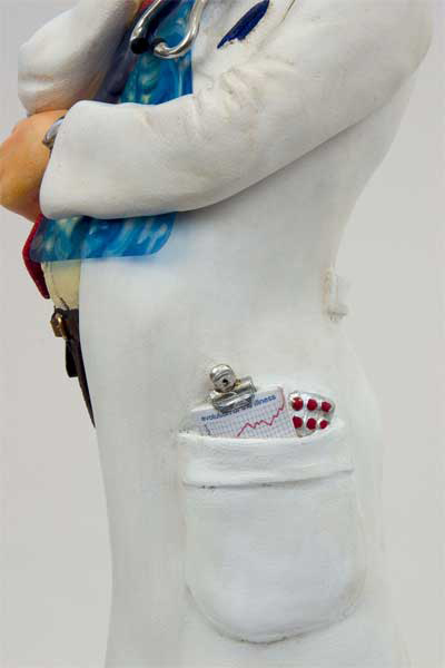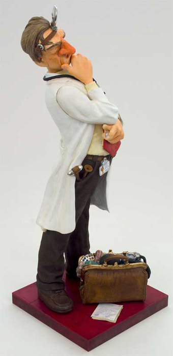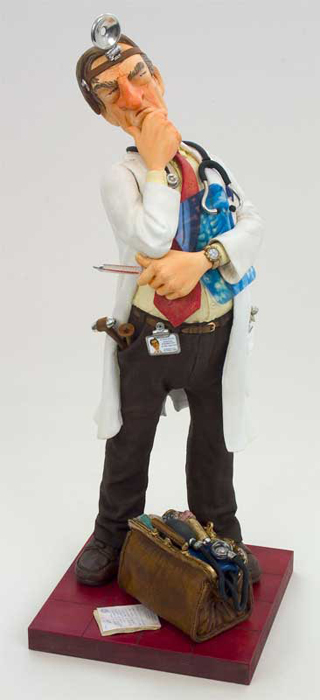 Jedes Guillermo Forchino Produkt ist in einem einzigartigem Forchino Zeitungspapier verpackt und mit einem Spezialetikett versehen. Auf dem Etikett und dem Aufkleber auf dem Boden jeder Verpackung ist wiederum die einmalige Nummerierung für jedes seiner Werke vermerkt. In jeder Verpackung befindet sich eine Broschüre mit der Autobiografie des Künstlers, sowie ausgewählten Abbildungen der Gesamtkollektion. Auch liegt ein nummeriertes Zertifikat der Verpackung bei, um die Echtheit des Forchinos Produktes zu beweisen. DIE GESCHICHTE: Der DoktorDoktor Jos‚ Batle war eine anerkannte Grösse auf seinem Gebiet. Seine Diagnosen, die stets korrekt waren, retteten hunderten von Leuten das Leben und trugen ihm grosse Beachtung bei der High Society ein. Alles lief ausgezeichnet, bis zu dem Tag, als einer der bekanntesten Schauspielerinnen aus Hollywood in seinem Büro erschien: die atemberaubende Marilyn Hayworth, Opfer eines verstauchten kleinen Fingers. Ohne einen Augenblick zu verschwenden, liess er sie alles ausziehen, um sicherzugehen, dass sie keine Komplikationen an anderen Stellen ihres Körpers hatte. Nach einer gründlichen und detailierten Untersuchung, konnte er bestätigen.......er hattesich verliebt. Die Diva dankte ihm für seine Sorgfältigkeit und verliess das Büro, einen verführerischen Duft von Camelien hinterlassend. Seit diesem Tag hörte Doktor Batle nie auf, an die grosse Marilyn zu denken, in der Hoffnung, dass sie einen anderen Finger verstauchen möge, so dass er sie erneut untersuchen konnte, dieses Mal etwas sorgfältiger. |